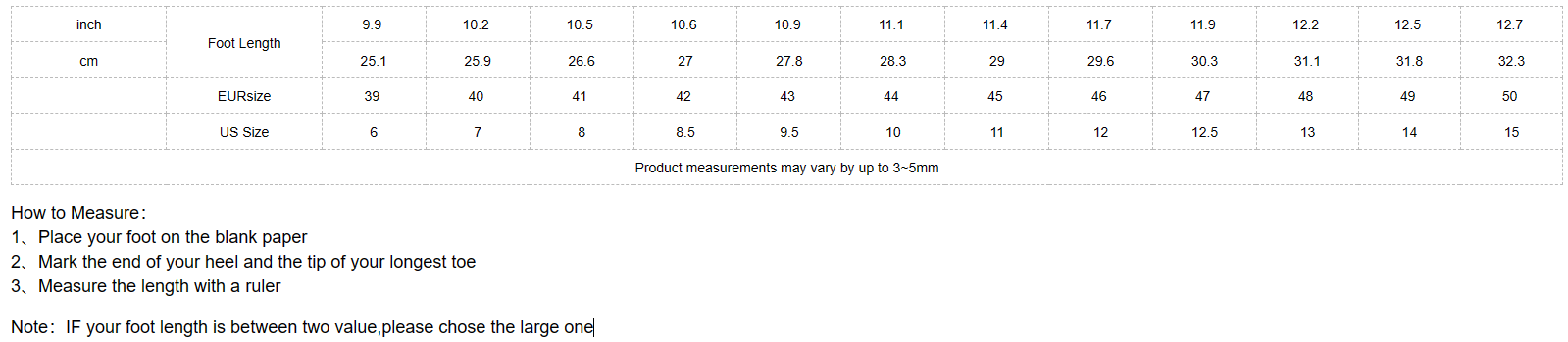 Product measurements may vary by up to 3~5mm
