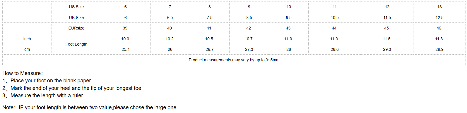 Product measurements may vary by up to 3~5mm