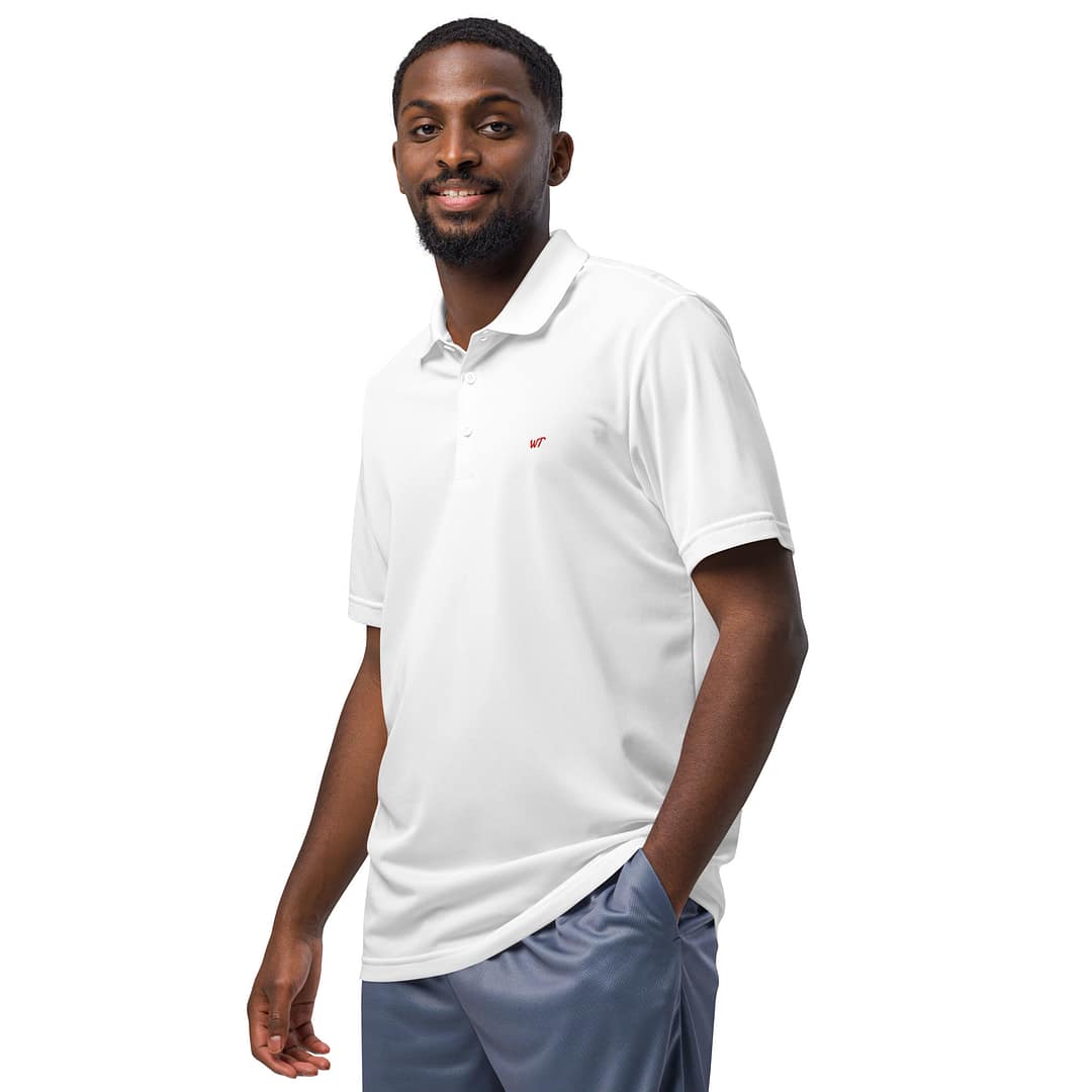 Stay cool and stylish with the adidas sport polo, made from 100% recycled polyester piqué. The lightweight and premium fabric features a hydrophilic finish and an athletic fit. Great for outdoor activities or casual wear alike.
