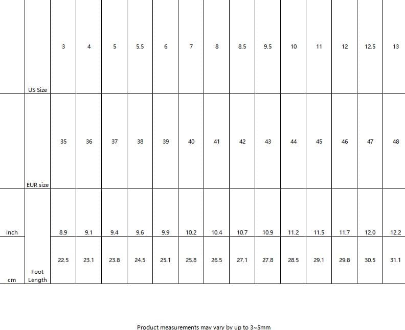EUR Size US Size Insole Length(inch) Insole Length(mm)